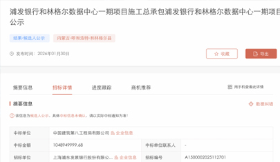 10.5亿,浦发银行和林格尔数据中心一期总承包项目开标