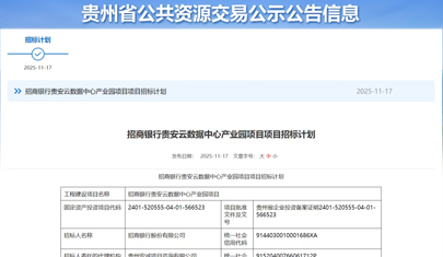 投资估算33.98亿!招商银行贵安云数据中心产业园项目招标计划发布