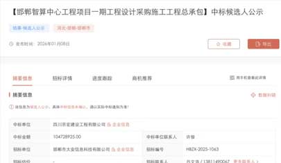 1亿,邯郸智算中心项目一期总承包中标结果公布