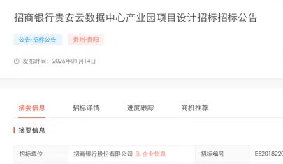 34亿,招商银行贵安云数据中心产业园项目启动设计招标