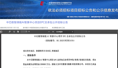 项目总投资25亿!新疆中芯数智绿能AI智算中心项目EPC总承包项目启动招标